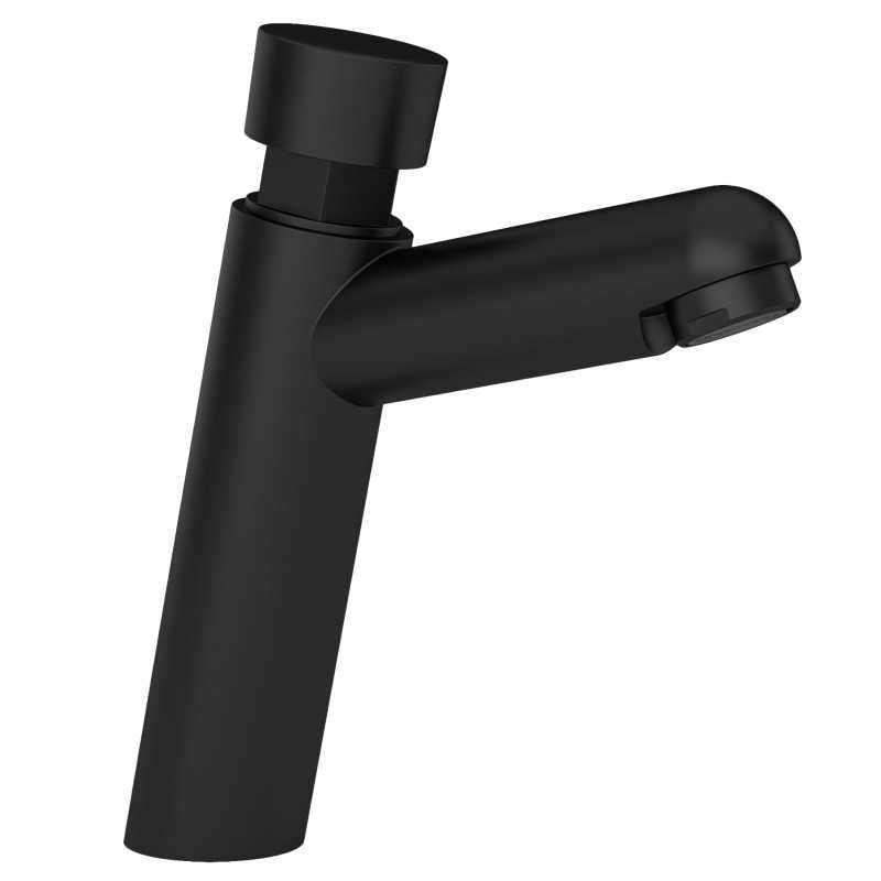 Grifo temporizado de agua fría con cierre automático, ideal para baños públicos o de alto uso. Su acabado en negro mate y diseño moderno lo hacen perfecto para lavabos elegantes y funcionales. Este grifo de lavabo agua fría permite un uso eficiente del agua gracias a su temporizador integrado, garantizando higiene y ahorro. Compatible con instalaciones estándar.